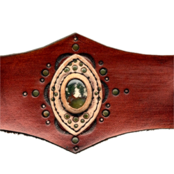Leather and Stone Bracelet – Turquoise, Spiny Oyster Shell and Bronze