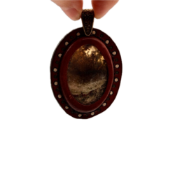 Measures 1.98″ wide by 2.78″ tall (including the hammered golden metal bail).